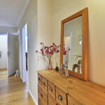 Schon beim Eintreten fällt der Boden ins Auge: Geölte Eichendielen im rustikalen Stil und Stäbchenparkett im Wohnzimmer bringen Wärme in die Räume und nehmen das natürliche Licht angenehm auf. Im Tagesverlauf entsteht so ein stimmiges Wohngefühl.