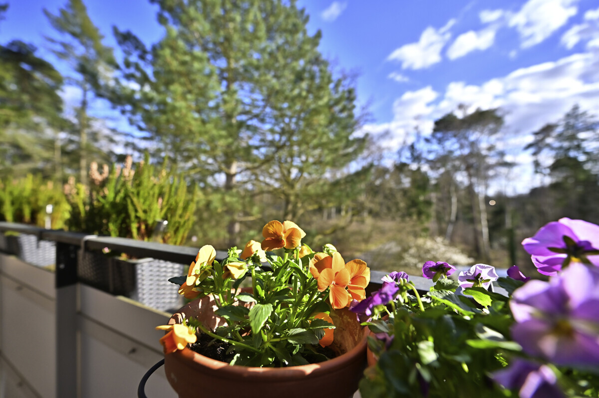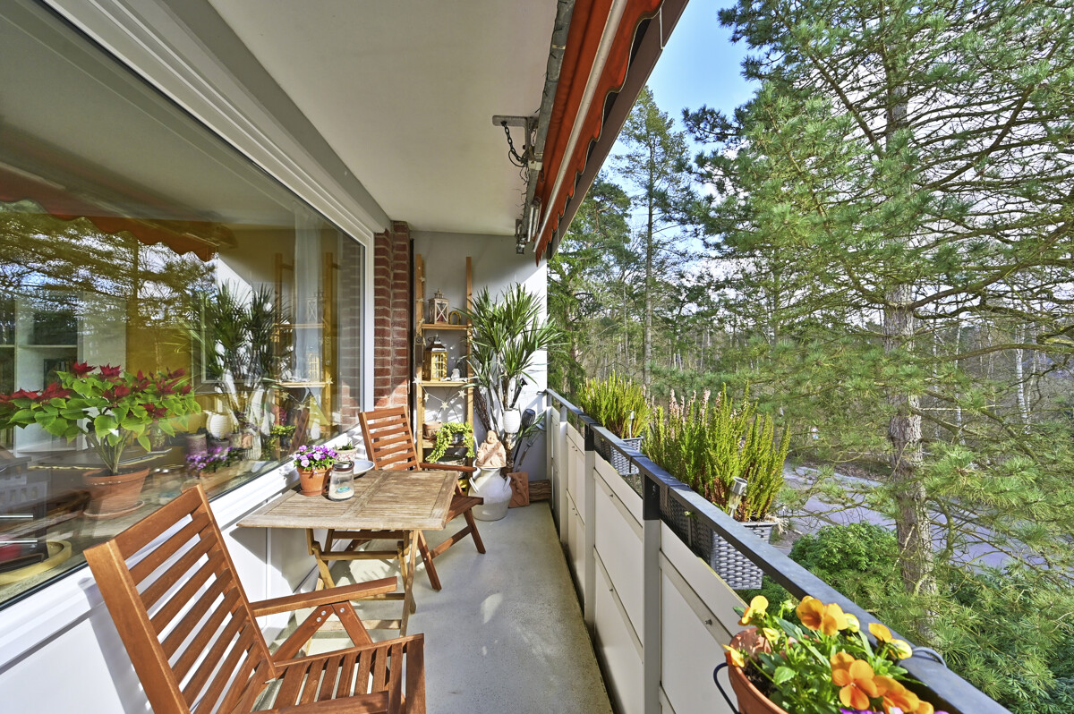 Ein Schritt auf den Balkon – und der Blick geht direkt ins Grüne. Keine Dächer, keine Straßen, nur Bäume und Weite. Genau dieses Gefühl macht diese Wohnung besonders.